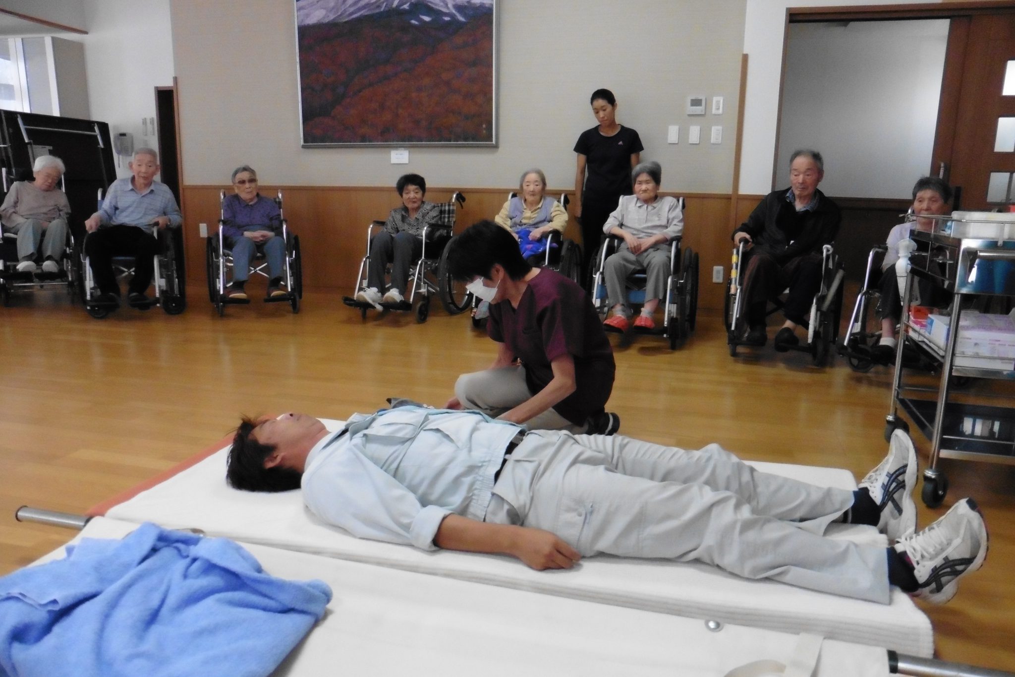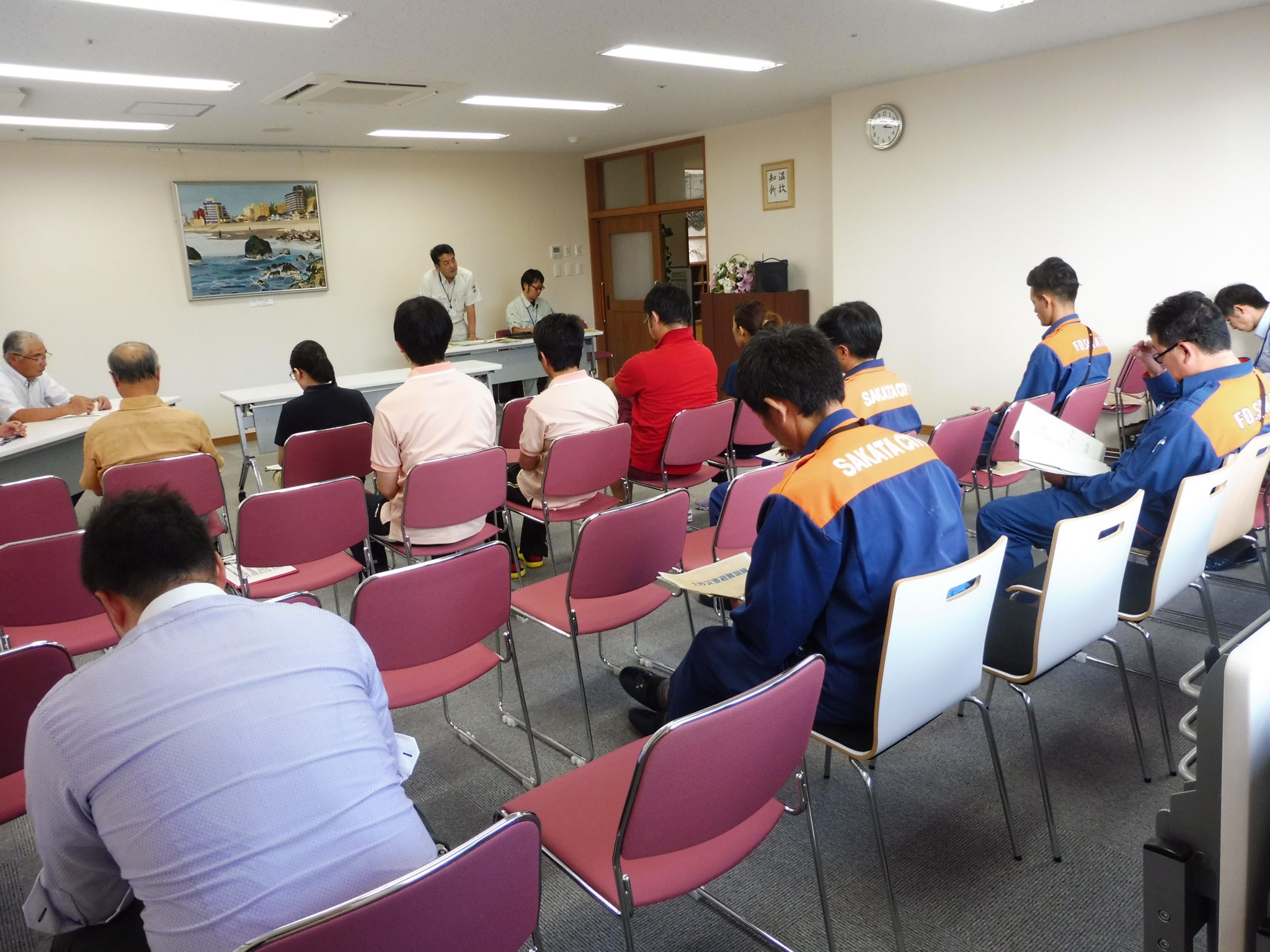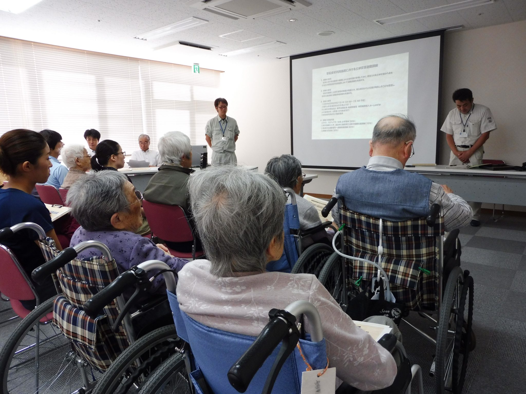お知らせ 土砂災害避難訓練を実施しました! 掲載日:2017年09月28日(木) 9月21日(木)14時~、山形県・酒田市共催のもと、土砂災害避難訓練を行いました。 利用者、施設職員、コミュニティ振興会役員の方々と一緒に参加し、貴重なお話・体験をさせていただきました。 今後、より一層、防災意識を高めて過ごしていきたいと思います。 情報伝達訓練 共同生活室での退避 一次避難場所への誘導 二次避難所へ搬送準備 けが人の搬送 けが人の手当て 土砂災害の学習会 訓練の反省会